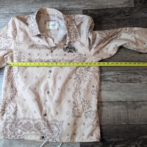 Stylish paisley patterned beige jacket from Eleven Paris. Perfect for any travel. size XL. in perfect pre-loved condition. no flaws.