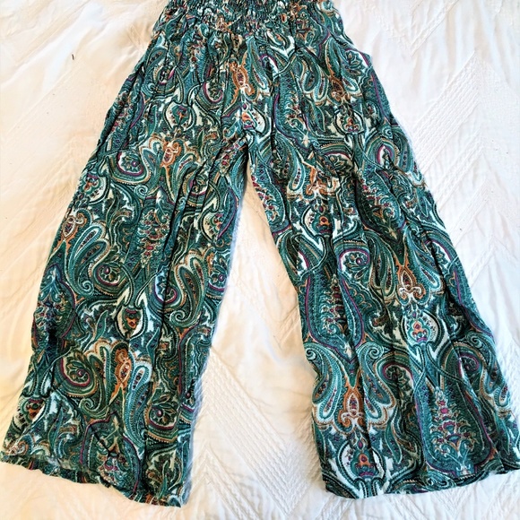 Never worn, patterned pants with tight waistband and flowy leg. Pants hit mid calf