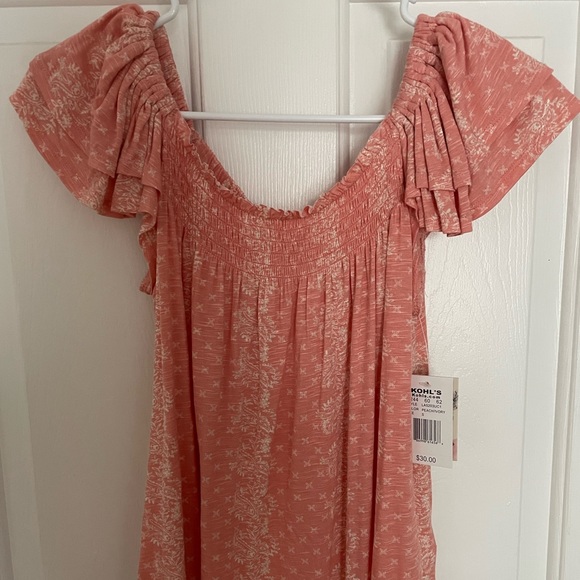 Peach patterned top with flutter sleeves. Can be on or off shoulder. NWT.