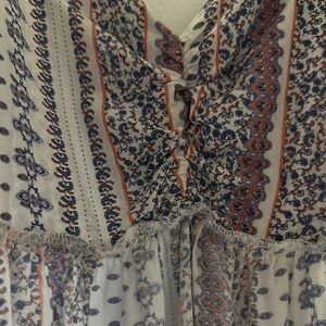 Chic and stylish patterned top with flutter sleeves. Perfect for any occasion. Stretchy and breathable fabric in the back. Double lined over the chest. Smoke and pet free home.