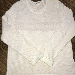 Cream sweater with light pink pattern. Perfect for winter. Slight discoloration in the front and sleeves.