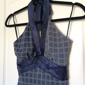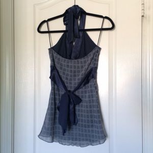 Flowy patterned top with silky ribbon ties. Lined, no padding