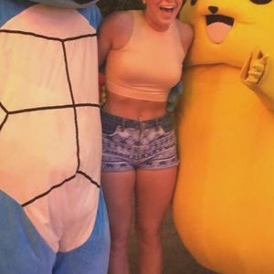 Patterned jean shorts.