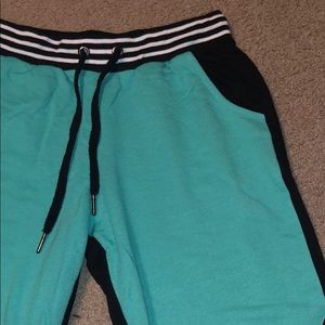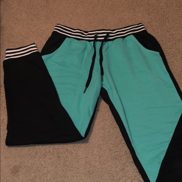 Pictures describe them best - super comfy! Ran slightly small. Elastic and drawstring waistline. Pockets. Skinny ankles. Great condition.