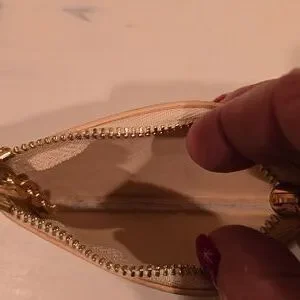 Stylish key pouch with a gold chain and clasp. Perfect for carrying small essentials. Please feel free to ask questions or request additional photos.