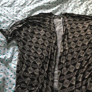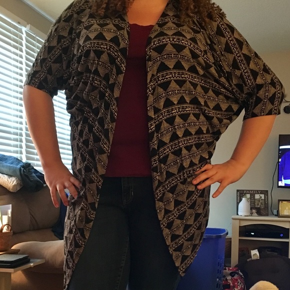 Really cute black and tan geometric pattern, great colors for fall! Longer in the front, shorter in the back. Only worn once or twice, great condition! Washed since last worn but will wash again if requested. From a smoke-free, shed-free environment.