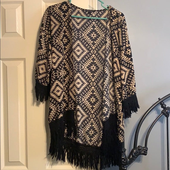In great condition, this kimono can add excitement to your outfit! Pair it with jeans and a black blouse and you’ll be ready for date night.