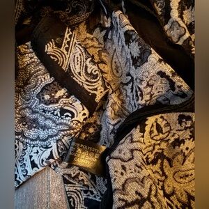 Stylish sheer kimono with detailed black and gray designs. Ideal for layering. NWOT