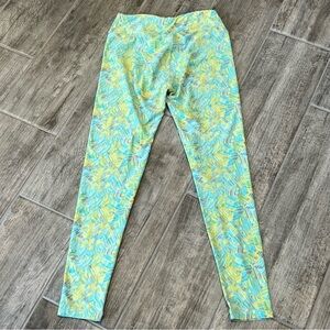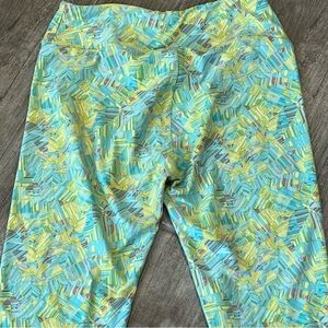 Keywords: leggings, patterned leggings, abstract print, colorful leggings, yoga pants, loungewear, casual pants, comfortable leggings, stretchy leggings, womens leggings, printed leggings, turquoise leggings, yellow leggings, athleisure, activewear
