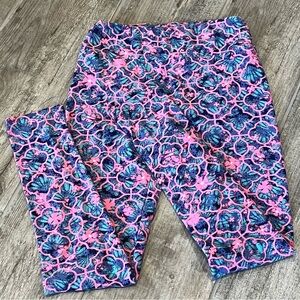 Keywords: leggings, yoga pants, abstract pattern, pink leggings, blue leggings, teal leggings, comfortable leggings, high waisted leggings, workout leggings, casual leggings, designer leggings, printed leggings, patterned leggings