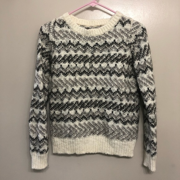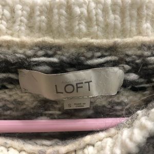 This white and black patterned Loft sweater is perfect for cozy winter days. It’s very warm and can dress up or down. Good used condition.