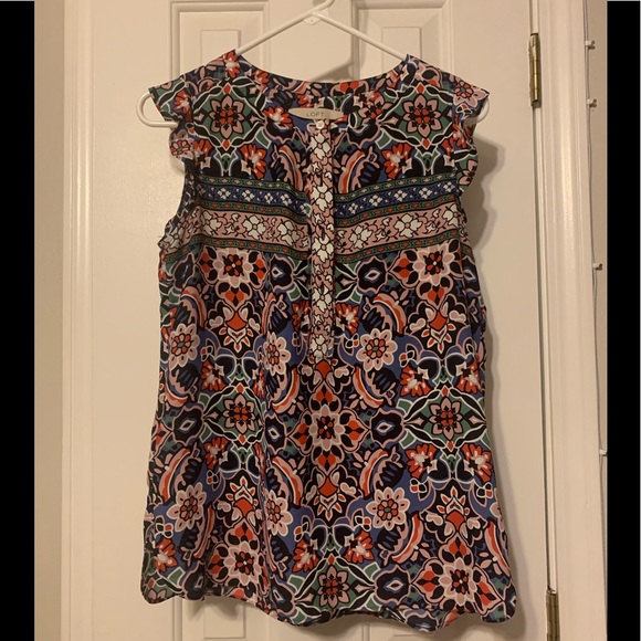 Beautiful patterned loft blouse. Excellent condition. Flutter sleeves on tank with buttons.