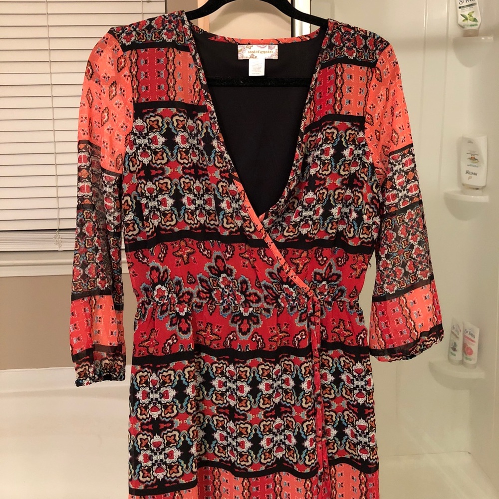 Bought from Revolve! This dress has never been worn but does not have tags. After removing the tags, I realized I bought the wrong size. I usually wear a 4 or a 6 and this is only big in my chest. (I wear a 34C). Slits up the side go up to your knee and then the dress is lined from there. No lining on the 3/4 length sleeves. Smoke free home.