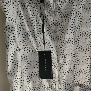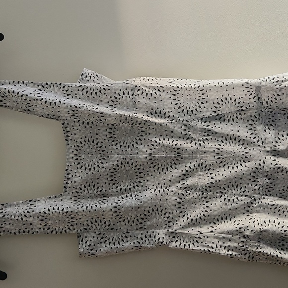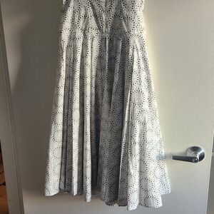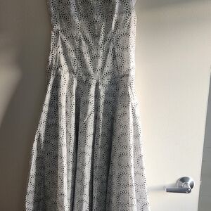 No lining. Fitted top with full skirt. Back zip. Lightweight. Perfect summer dress.