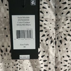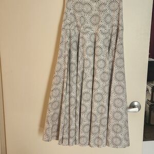 Elegant maxi skirt with intricate patterns. Features a blend of white and black colors.