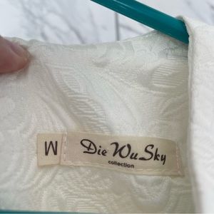 White, Teal, Pink, Navy patterned mini dress Size M Peplum style Fully lined Sleeveless