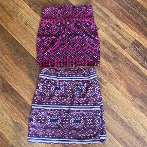 Excellent used condition, stretchy mini skirts from Charlotte Russe. Worn a handful of times. Bottom one is a small top is an XS. Super cute, boho and fun! 💕☮️