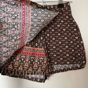 Patterned mini skort! Sits high rise and has built in shorts. No tag but fits XS/24-25 inch. Super cute but I just don’t wear skirts much.