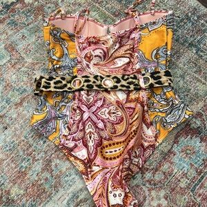River Island Resort Paisley and cheetah belted one piece