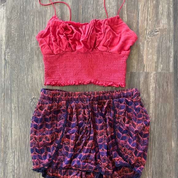 Vibrant patterned set with ruched details. Perfect for casual outings. Top and bottom included in bundle!