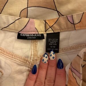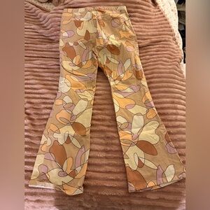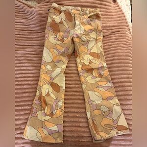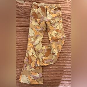Bootcut printed jeans. Multi colored. Comfy and stretchy!