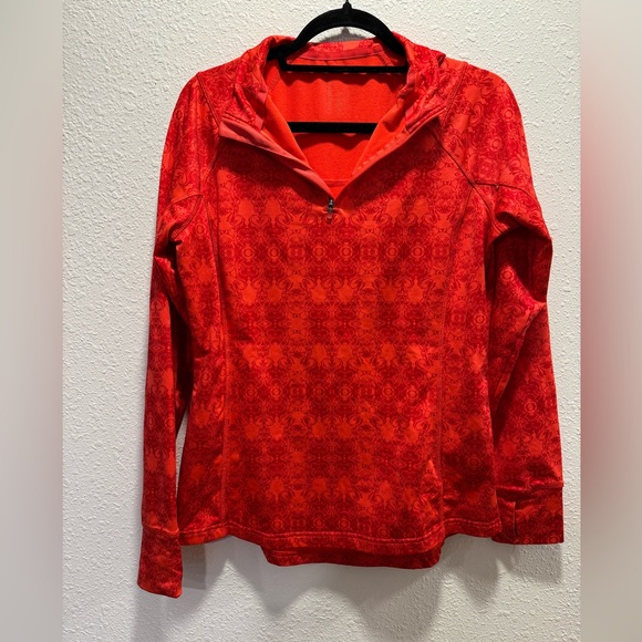 Thick, warm red quarter zip with fun pattern