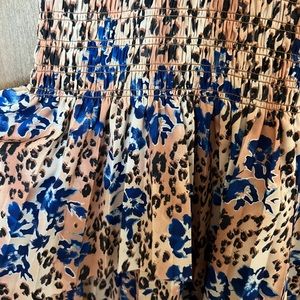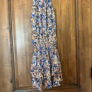 Cheetah/leopard print with flowers. Cinched waist and high neck. Worn once.