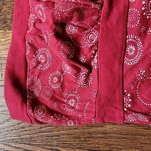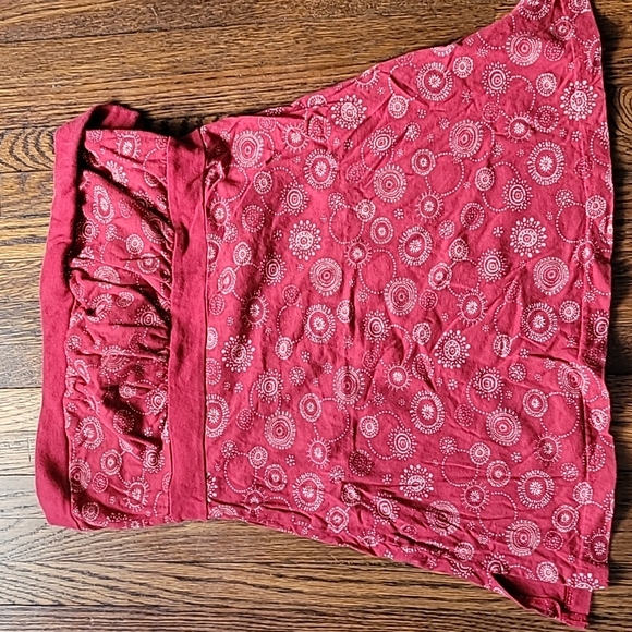 Red /Raspberry patterned strapless top , cotton, very comfortable and cute on. Worn a handful of times but in good condition.