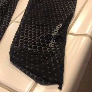 Reebok leggings with a triangular pattern and slit ankles. Lightly used