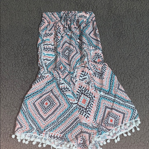 This strapless romper looks really small but it actually is super comfortable and shapes me really well! It is really cute with a white cardigan and heels to dress it up, or just with sandals!