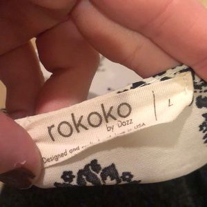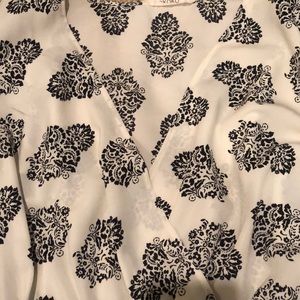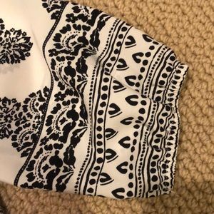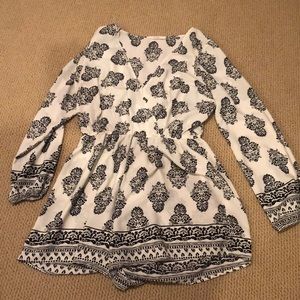 Black and White Patterned Romper. Size Large. Elastic at the end of sleeve and around waist, deep V.