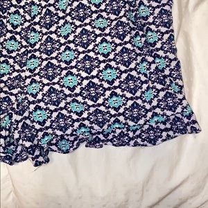 Patterned romper- great for summer! Ruffled hem at bottom, front clasp closure in front, tie back up top. Worn twice, size M but fits like S😁