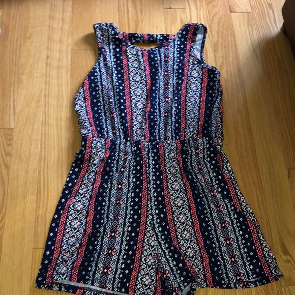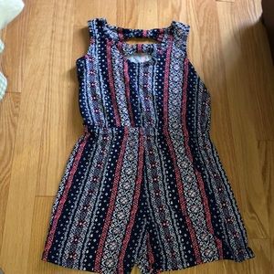 NEVER WORN - Pink blue and white patterned romper size MEDIUM but fits like a SMALL
