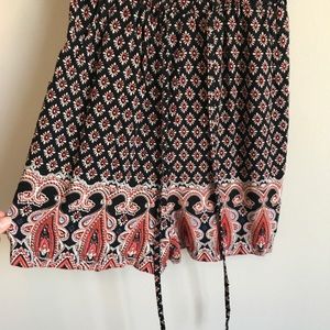 Fun patterned romper perfect for the summer! Tied waist helps give you a nice figure, and buttons let you choose how deep the top is. Also adjustable straps and POCKETS!! Amazing and barely worn bc I grew out of it