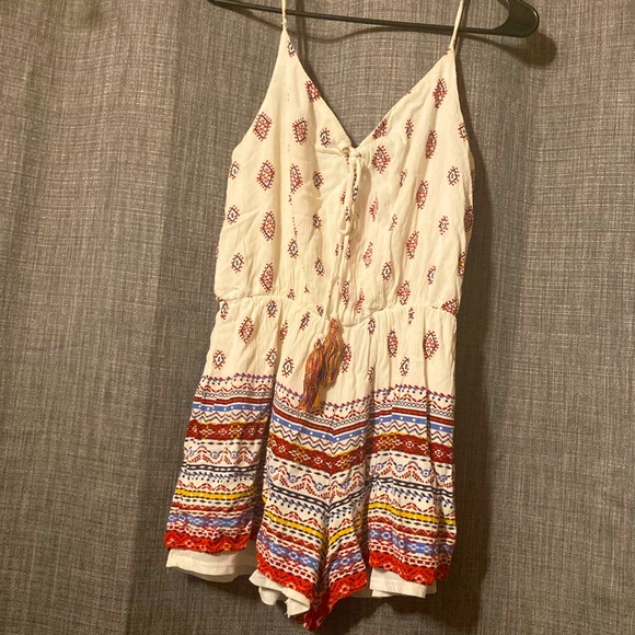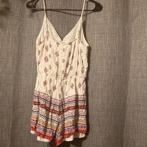 Size small, Xhilaration romper in very good condition, has only been worn once. It is mainly off white, very comfortable and has shorts under to avoid being see-through. Comes from a smoke free house. Offers accepted.