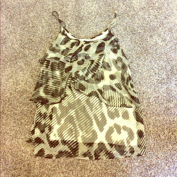 Black & creme patterned blouse with ruffles. Worn twice!! Be sure to check out my other listings!! I'm willing to negotiate prices!! EVERYTHING MUST GO!!