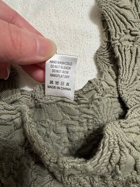 In excellent condition. No flaws. Size large, runs true to size. Sage green in color.