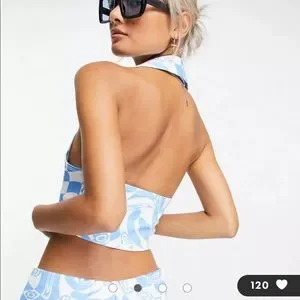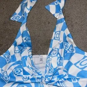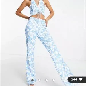 Blue and white patterned pants & top set!! Never worn, tags still on!!