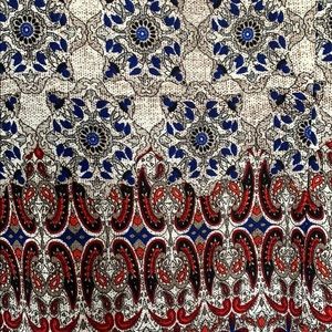 Short sleeve patterned Shift Dress - lined, gold zipper back, and longer short sleeves. In great condition and a versatile dress!