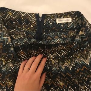 Can be worn mid waist, flowy at the Bottoms, in seen zipper in back, great condition, bought at high end boutique