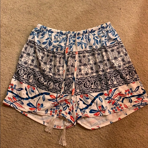 Flowy and loose shorts. Orange, Blue and White. Cinched waist with tassels. Cute for the summer. No refunds/Returns.