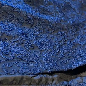 High rise satin shorts with elegant floral textured pattern. Navy blue and black. Zips in back