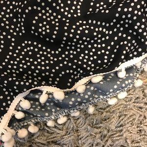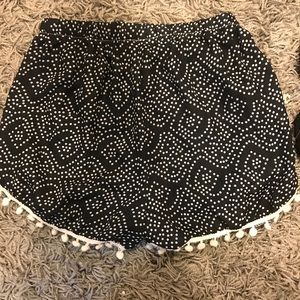 Navy printed elastic shorts with white Pom Pom’s on the bottom trim. Only worn once.