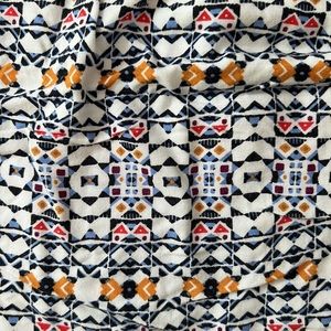 Patterned shorts from H&M. Elastic waistband. They say US size 12 but I’m a 6-8 and they fit slightly loosely.