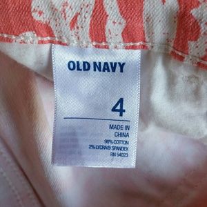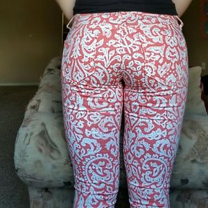 Old Navy coral and white skinny jeans size 4. They are too small for me :-( but they are hardly worn! They are super soft and really stretchy
