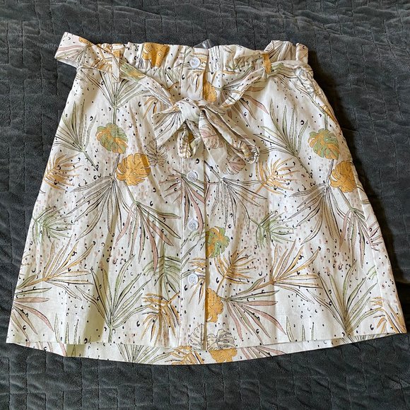 Patterned skirt with buttons and belt