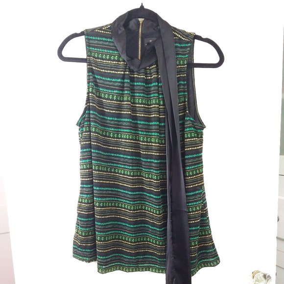 Patterned Sleeveless Lined Top with Connected Scarf by Worthington