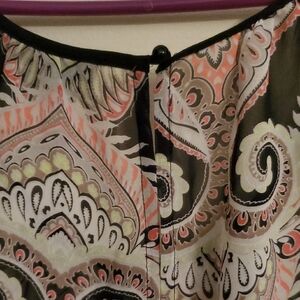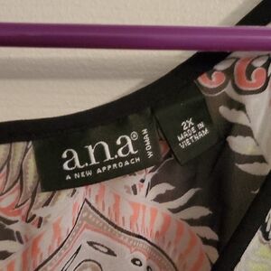 a.n.a. Sheer Patterned Sleeveless Top Women's 2X NWT Stylish sleeveless top with a vibrant pattern. Perfect for casual outings or a day at the office. lime coral taupe and black