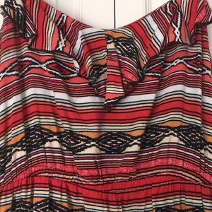 Lightweight and comfy sundress. Has adjustable strap. Appropriate length for work or play. 100% Rayon.