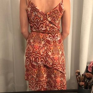 Pattered Sundress with asymmetrical hemline. Brown belt included!